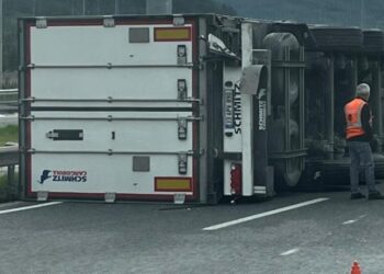 Bozüyük’te kontrolden çıkan tır devrildi.