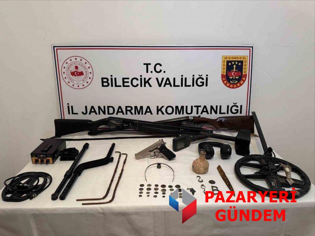Operasyonda yalnızca tarihi eserler değil, kaçak kazılarda kullanıldığı düşünülen ekipmanlar da dikkat çekti. Aramalarda 2 dedektör, 2 metal arama çubuğu, ayrıca 1 kurusıkıdan bozma tabanca ve 2 av tüfeği bulundu.